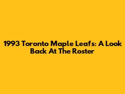 1993 Toronto Maple Leafs: A Look Back At The Roster