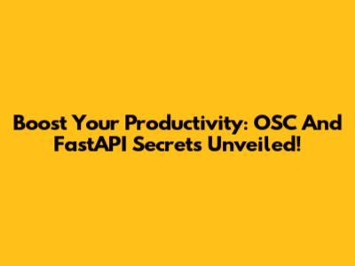 Boost Your Productivity: OSC And FastAPI Secrets Unveiled!