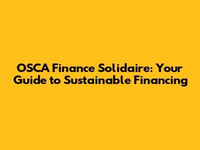Hey there, finance enthusiasts! Ever heard of OSCA Finance Solidaire? If not, you're in for a treat! This is the place for you. We're diving deep into the world of OSCA Finance Solidaire, exploring its ins and outs, and understanding how it's shaping the future of sustainable financing. Let's get started, shall we?