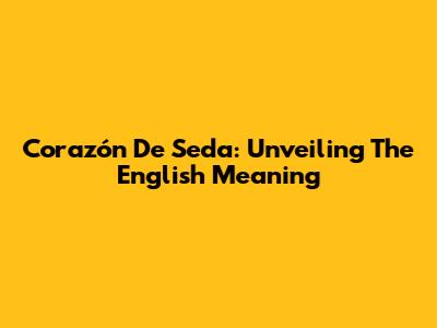 Corazón De Seda: Unveiling The English Meaning