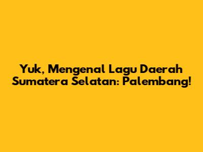 Yuk, Mengenal Lagu Daerah Sumatera Selatan: Palembang!