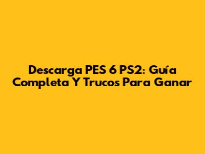Descarga PES 6 PS2: Guía Completa Y Trucos Para Ganar