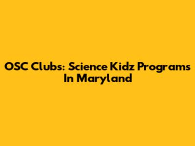 OSC Clubs: Science Kidz Programs In Maryland