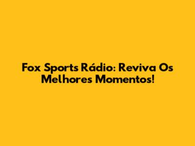 Fox Sports Rádio: Reviva Os Melhores Momentos!