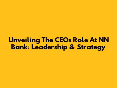 Unveiling The CEO's Role At NN Bank: Leadership & Strategy