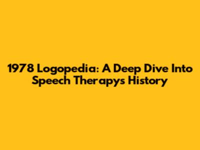 1978 Logopedia: A Deep Dive Into Speech Therapy's History