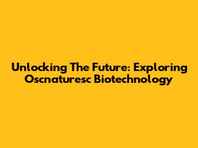 Unlocking The Future: Exploring Oscnaturesc Biotechnology