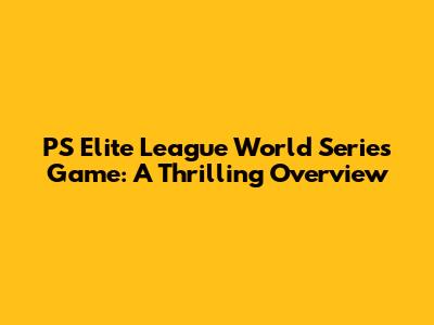 PS Elite League World Series Game: A Thrilling Overview