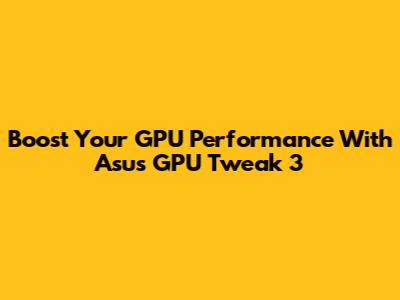 Boost Your GPU Performance With Asus GPU Tweak 3