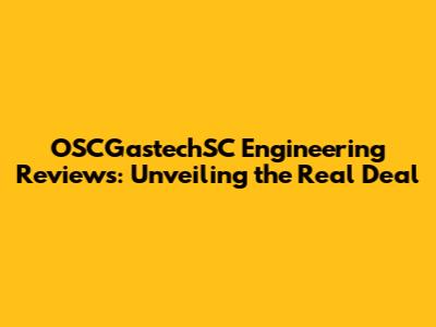 OSCGastechSC Engineering Reviews: The Good, the Bad, and the Truth