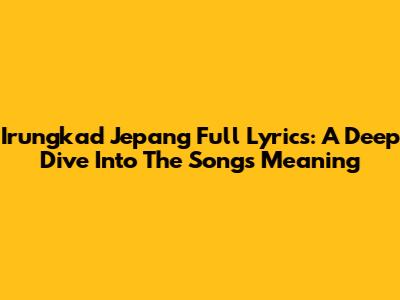 Irungkad Jepang Full Lyrics: A Deep Dive Into The Song's Meaning