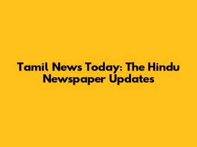 Tamil News Today: The Hindu Newspaper Updates