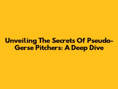 Unveiling The Secrets Of Pseudo-Gerse Pitchers: A Deep Dive