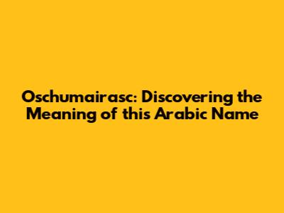 Hey guys! Ever stumbled upon a name that just sounds cool and mysterious? Well, "Oschumairasc" is one of those names! If you're curious about what this unique Arabic name means, you're in the right place. Let's dive into the origins, meanings, and cultural significance of Oschumairasc. Whether you're a name enthusiast, exploring your heritage, or just looking for some interesting trivia, this article is for you. Trust me, by the end of this read, you'll be an Oschumairasc expert! So, grab a comfy seat, and let's get started!