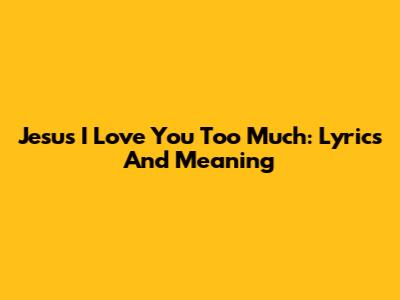 Jesus I Love You Too Much: Lyrics And Meaning