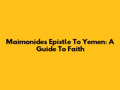 Maimonides Epistle To Yemen: A Guide To Faith