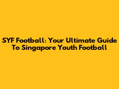 SYF Football: Your Ultimate Guide To Singapore Youth Football