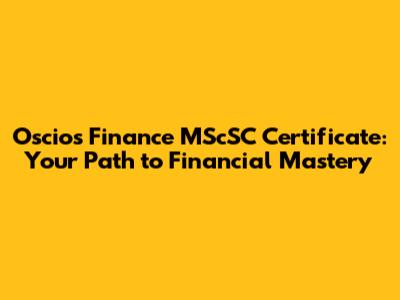 What Exactly is the Oscios Finance MScSC Certificate?