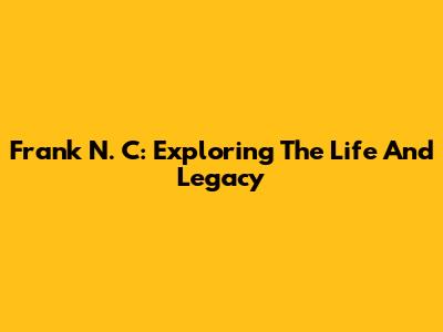 Frank N. C: Exploring The Life And Legacy