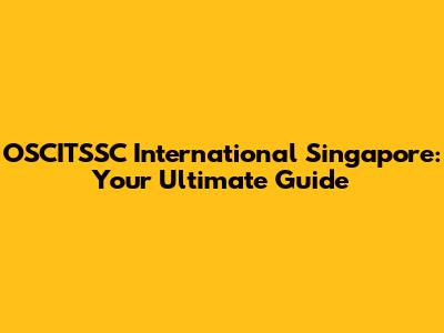 Unveiling OSCITSSC International Singapore: What Sets It Apart?