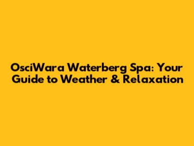Let's dive into everything you need to know about OsciWara Waterberg Spa, especially focusing on the weather and how it impacts your relaxing getaway! Planning a spa day? Of course! But before you pack your bags and get ready for some serious pampering, understanding the weather conditions in and around the Waterberg region is super important. After all, nobody wants a rainy spa day when they were hoping for sunshine by the pool. So, guys, let's get into the details to make sure your trip to OsciWara Waterberg Spa is as perfect as possible.