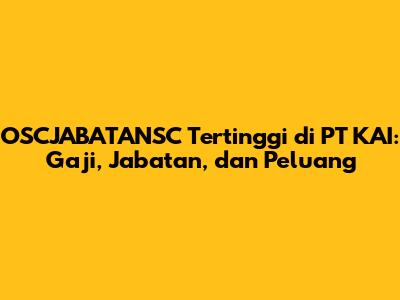 Semoga artikel ini bermanfaat dan memberikan gambaran tentang OSCJABATANSC tertinggi di PT KAI. Jangan ragu untuk mencari informasi lebih lanjut dan terus belajar. Sampai jumpa di artikel menarik lainnya!