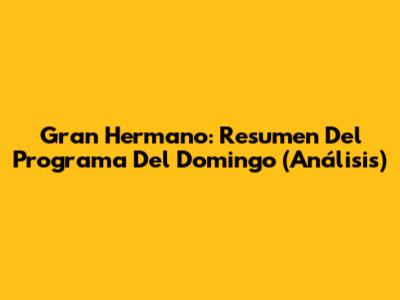 Gran Hermano: Resumen Del Programa Del Domingo (Análisis)