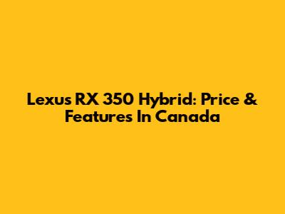 Lexus RX 350 Hybrid: Price & Features In Canada