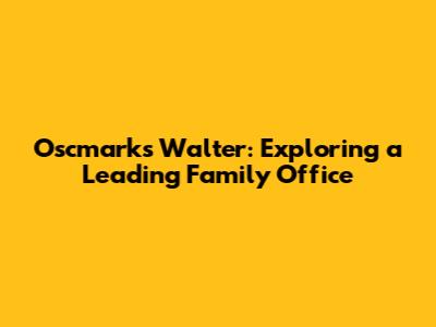 Let's dive into the world of Oscmarks Walter, a name that resonates in the realm of family offices. Family offices, for those who might not be familiar, are private wealth management firms that cater to ultra-high-net-worth individuals and families. They handle everything from investments and estate planning to philanthropy and even lifestyle management. So, what makes Oscmarks Walter stand out in this exclusive arena?