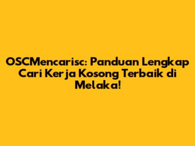 Hai, guys! Jika kamu sedang mencari kerja kosong di Melaka, kamu berada di tempat yang tepat! Melaka, kota bersejarah yang indah ini, tidak hanya menawarkan pesona wisata yang memukau, tetapi juga peluang karir yang menarik. Dalam artikel ini, kita akan membahas secara mendalam tentang OSCMencarisc, platform yang bisa menjadi teman terbaikmu dalam pencarian kerja. Kita akan kupas tuntas bagaimana OSCMencarisc dapat membantumu menemukan lowongan kerja di Melaka yang sesuai dengan keahlian dan minatmu. Siap-siap, ya, karena kita akan menjelajahi dunia job vacancy Melaka secara detail!