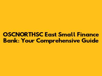 Hey guys! Ever heard of OSCNORTHSC East Small Finance Bank and wondered what it's all about? Well, you've come to the right place! This guide will walk you through everything you need to know about this bank, from its history and services to its impact and future. Let's dive in!
