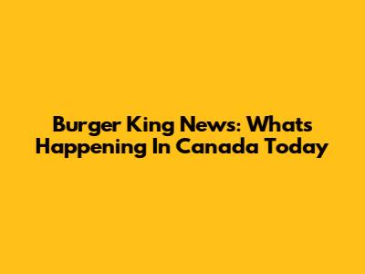 Burger King News: What's Happening In Canada Today