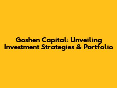 Goshen Capital: Unveiling Investment Strategies & Portfolio