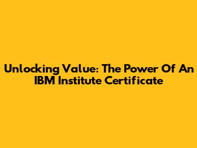 Unlocking Value: The Power Of An IBM Institute Certificate