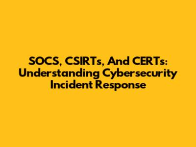 SOCS, CSIRTs, And CERTs: Understanding Cybersecurity Incident Response