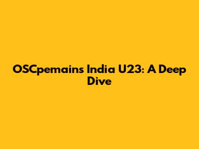 Understanding OSCpemains India U23: More Than Just a Team