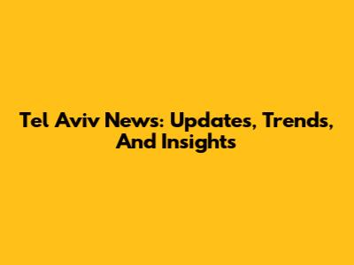 Tel Aviv News: Updates, Trends, And Insights