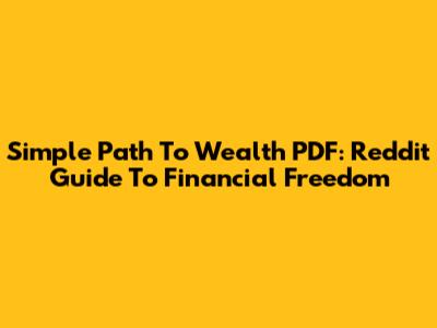 Simple Path To Wealth PDF: Reddit Guide To Financial Freedom