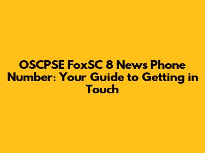 Summary: Your Complete Guide to Contacting OSCPSE FoxSC 8 News