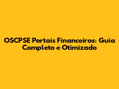 O Que São OSCPSE Portais Financeiros? Entenda Tudo!