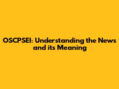 OSCPSEI: Understanding The News And Its Meaning