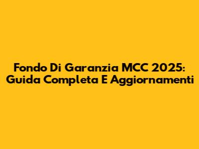 Fondo Di Garanzia MCC 2025: Guida Completa E Aggiornamenti