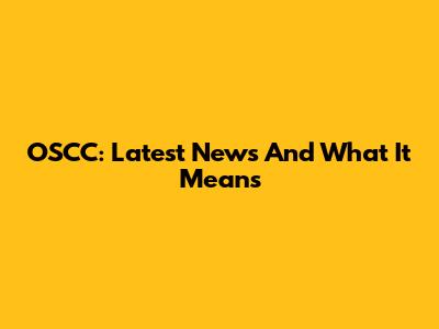 OSCC: Latest News And What It Means