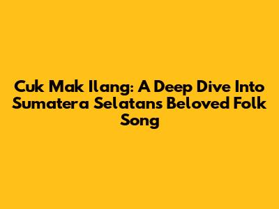 Cuk Mak Ilang: A Deep Dive Into Sumatera Selatan's Beloved Folk Song