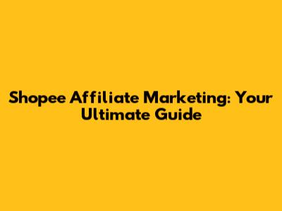 Shopee Affiliate Marketing: Your Ultimate Guide