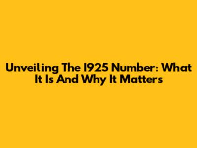 Unveiling The I925 Number: What It Is And Why It Matters
