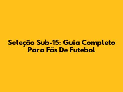 Seleção Sub-15: Guia Completo Para Fãs De Futebol