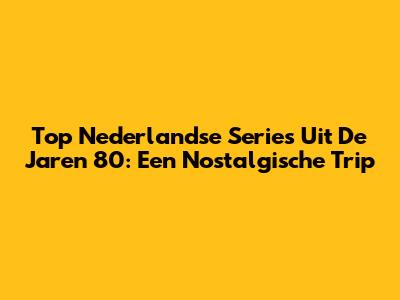 Top Nederlandse Series Uit De Jaren 80: Een Nostalgische Trip