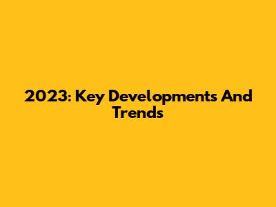 2023: Key Developments And Trends