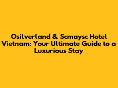 Hey guys! Planning a trip to Vietnam? Awesome! If you're looking for a luxurious and memorable experience, then you've probably stumbled upon Osilverland & Scmaysc Hotel Vietnam. These hotels offer a blend of comfort, style, and top-notch service. In this guide, we'll dive deep into everything you need to know to make the most of your stay. We'll explore what makes these hotels stand out, from their stunning locations to the amenities and services they offer. Whether you're a seasoned traveler or a first-timer, this guide is packed with insider tips and tricks to help you plan the perfect getaway. Let's get started and discover the magic of Osilverland & Scmaysc Hotel Vietnam!